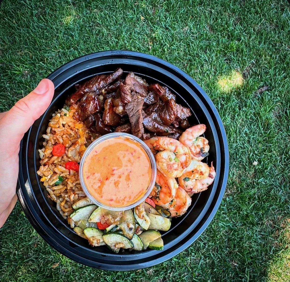 Inspired by classic hibachi flavors, this bowl brings the heat and the sizzle. Our fried rice is loaded with savory aromatics and just the right amount of crisp, while the roasted veggies add that smoky, charred finish. Served with our homemade yumyum sauce for dipping or drizzling, and even better with your choice of hibachi-marinated chicken, steak, or shrimp.