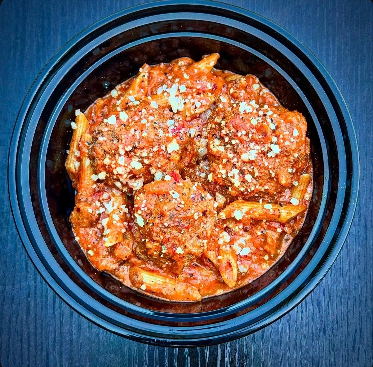 Homemade vodka cream sauce, penne pasta, handcrafted meatballs, and shaved parmesan.