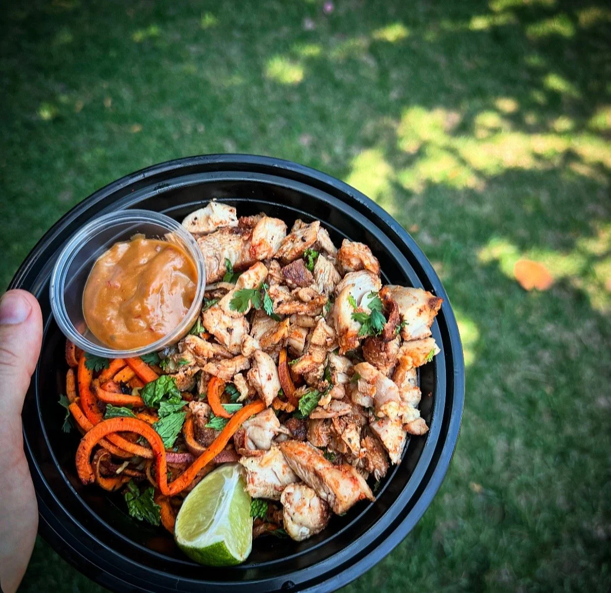 Light, vibrant, and bursting with flavor — this bowl is all about balance. A colorful mix of sautéed veggies over a base of spiralized sweet potatoes, finished with a creamy, tangy sunflower butter sauce. Pairs perfectly with brined chicken breast or crispy tofu.